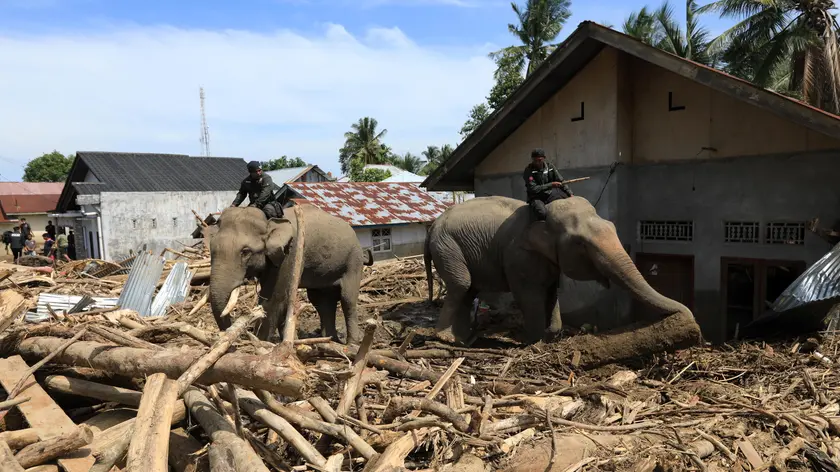 L'Indonesia manda gli elefanti per rimuovere le macerie dopo le inondazioni