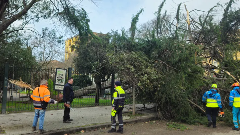 Un grosso abete è stato sradicato dal vento ai giardini pubblici di Sassari