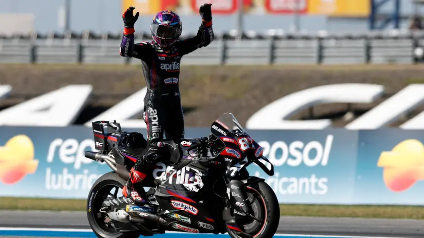 (ANSA) - ROMA, 28 MAR - Jorge Martin (Aprilia) ha vinto la Sprint Race sul circuito di Austin, classe MotoGP. Secondo é giunto Francesco Bagnaia (Ducati), seguito da Pedro Acosta (Ktm). Lo stesso Martin é poi incappato in un singolare incidente, dopo aver tagliato il traguardo. Lo spagnolo, raggiante per essere tornato al successo, ha iniziato una lunga impennata di festeggiamento, ma quando ha riportato la ruota anteriore sull'asfalto ha perso il controllo della sua Aprilia, é caduto ed é scivolato a lungo sulla pista. Senza conseguenze, per fortuna dello spagnolo reduce da un 2025 costellato di infortuni e che ora si ritrova leader del Mondiale. (ANSA).