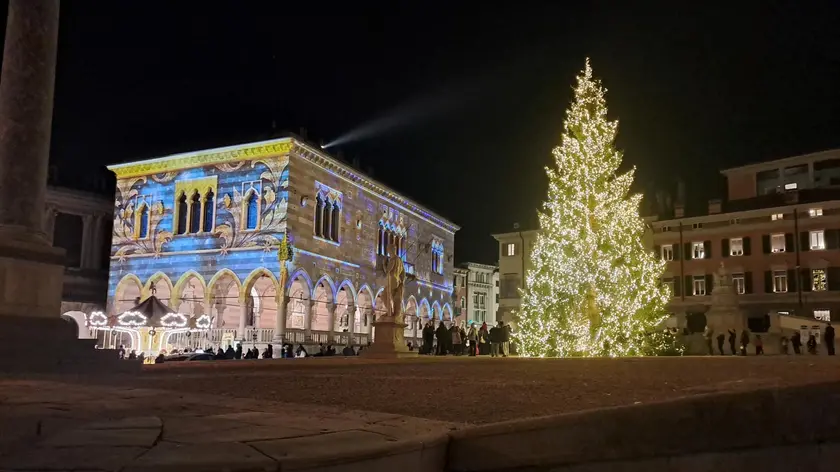 (ANSA) - UDINE, 24 DIC - Udine sembra galleggiare nei colori fiabeschi mobili proiettati sugli edifici più importanti e nei luoghi di aggregazione. E' l'atmosfera che si respira nel capoluogo friulano grazie soprattutto al video mapping, che diventa ancora più suggestivo al calare del buio. Gli alberi e gli addobbi di Natale, le casette di Babbo Natale, gli echi di cornamuse e zampogne che rimbalzano nelle piazze trasformano la città in un ambiente da sogno. E poi teatro, letture, laboratori per bambini e momenti culturali anche per grandi completano l' ambientazione di un Natale di magia. Ma sono soprattutto le proiezioni dinamiche con illusioni ottiche tridimensionali ed effetti visivi spettacolari a colpire i passanti, con luci e animazioni come gli animali parlanti del Museo Etnografico del Friuli. (ANSA).
