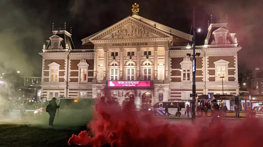 (ANSA-AFP) - L'AIA, 15 DIC - La polizia olandese ha arrestato 22 persone dopo gli scontri di ieri con i manifestanti fuori da una sala concerti di Amsterdam che ospitava un'esibizione del cantore ufficiale dell'esercito israeliano, Shai Abramson. "La polizia - si legge in una nota ufficiale - è intervenuta più volte per tenere a distanza i manifestanti e mantenere l'ordine pubblico". Usati manganelli mentre i dimostranti facevano esplodere bombe fumogene. Un agente avrebbe riportato ferite lievi. La polizia ha anche arrestato 22 persone per reati che includevano la violazione del regolamento di assembramento pubblico, il possesso di fuochi d'artificio e la resistenza all'arresto. Inizialmente Abramson avrebbe dovuto dirigere il concerto annuale pubblico di Hanukkah del Concertgebouw domenica pomeriggio, ma il piano ha suscitato proteste pubbliche a causa dei suoi legami con l'esercito israeliano. La partecipazione all'evento pomeridiano è stata annullata e sostituita da un invito a cantare in due concerti serali privati. (ANSA-AFP).