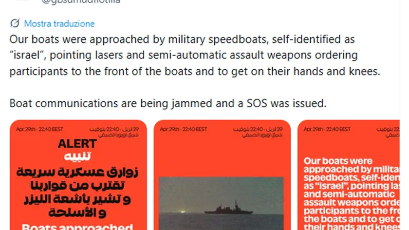 (ANSA) - ROMA, 29 APR - 'Il Ministero degli Esteri ha ricevuto informazioni su un avvicinamento di unità militari di Israele alle barche della Flottilla salpate nei giorni scorsi per una navigazione verso Gaza. Il ministro degli Esteri Antonio Tajani ha chiesto immediatamente all'Unità di Crisi, all'ambasciata d'Italia a Tel Aviv e all'ambasciata d'Italia ad Atene di assumere informazioni con le autorità israeliane e greche per definire i contorni dell'operazione in corso e permettere al Governo italiano di mettere in atto le azioni necessarie a tutelare i cittadini italiani imbarcati'. Lo scrive la Farnesina in una nota. (ANSA).