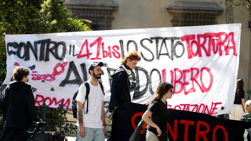 (ANSA) - ROMA, 11 APR - "Contro il 42 bis, lo Stato tortura. Alfredo libero" e "Se viviamo è per far saltare la testa dei re. Con Sara e Sandro". Sono questi alcuni degli slogan sugli striscioni esposti oggi pomeriggio in via Arenula a Roma, a pochi metri dal ministero della Giustizia, durante un'assemblea pubblica a cui ha partecipato un gruppo di persone, protestando contro la possibile proroga del carcere duro per l'anarchico Alfredo Cospito, detenuto al regime di 41 bis. I manifestanti hanno dato appuntamento per la manifestazione che si svolgerà nella capitale il prossimo 18 aprile, sempre di solidarietà per Cospito. Tra gli striscioni, anche i riferimenti agli anarchici Sara Ardizzone e Alessandro Mercogliano, i due militanti morti lo scorso 19 marzo mentre stavano fabbricando un ordigno in un casale nel Parco degli Acquedotti a Roma. (ANSA).