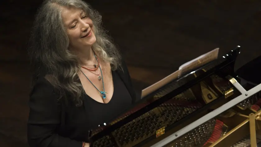 (ANSA) - FERMO, 23 GEN - Il Teatro dell'Aquila di Fermo, per l'occasione sold out, ha salutato con una standing ovation ieri sera l'esibizione della leggenda del piano Martha Algerich che si è esibita in duo con Gabriele Baldocci in un concerto organizzato dal Circolo di Ave. "Oggi si avvera un sogno" , ha affermato la presidente e direttrice artistica del Circolo Anna Danielli introducendo l'evento, e non si può che darle ragione, data la qualità dell'esecuzione e la difficoltà di portare a Fermo un personaggio del genere, che ha calcato i più importanti palcoscenici internazionali. Discreta, silenziosa, spontanea, Algerich ha preferito lasciar parlare anche nelle interviste Baldocci, a cui la lega un sodalizio artistico ventennale, che s'inquadra in un' attività concertistica che negli ultimi anni si è incentrata soprattutto nel valorizzare con la sua presenza i talenti più giovani cui consegnare la sua eredità culturale. I ben informati raccontano che ha voluto iniziare il concento con qualche minuto di ritardo per continuare a provare e che in tournée porta sempre con sé una pianola per non smettere di esercitarsi. Colpita dalla bellezza di Fermo e dall'acustica perfetta del suo storico teatro, la pianista ha provato ripetutamente anche il brano in programma composto da Baldocci 'In their arms', e da lui dedicato ai nonni, chiedendo al suo autore e collega indicazioni per una corretta esecuzione. Vestita di una tunica nera su larghi pantaloni in tinta, i capelli sciolti come sempre sulle spalle, Algerich ha offerto, alternandosi con Baldocci ai due pianoforti, una prova di rara perfezione e sensibilità musicale, cimentandosi in un repertorio virtuosistico di grande difficoltà suonato all'unisono col collega 45enne (in nero con un cappello da cantante pop), e trasformando il pianoforte, come sottolineato dai critici di tutto il mondo, in un organismo vivente. A partire dalle risonanze incrociate della Sonata in Re Maggiore per due pianoforti K 448 di Mozart, scritta dal compositore a 25 anni (1781) in stile galante per la talentuosa allieva e collega Josepha Auernhammer, cui è seguita l'esecuzione a quattro mani della Petite Suite di Claude Debussy, realizzata dall'autore tra il 1886 e il 1889 e ispirata alle poesie di Verlaine. E' stata poi la volta del Concertino op. 94 di Shostacovich per due pianoforti, composta per il figlio Maxim nel 1953, che alterna momenti di nostalgico lirismo a vere e proprie esplosioni di virtuosismo percussivo e ancora del La Valse di Ravel nella trascrizione per due pianoforti. (ANSA).