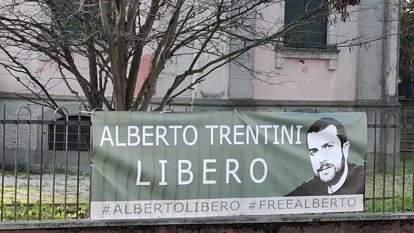 Striscione per chiedere la libertà di Alberto Trentini esposto a Vigonovo