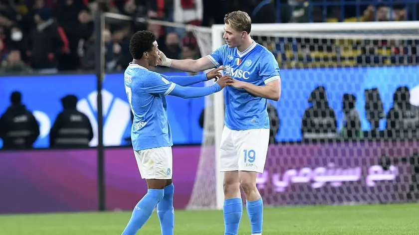 (ANSA) - RIAD, 19 DIC - Il Napoli é in finale della Supercoppa italiana. Nella semifinale giocata a Riad ha battuto 2-0 il Milan. Domani sarà la volta di Bologna-Inter. Lunedì la finale. Una per tempo le reti dei partenopei: al 39' della prima frazione di gioco Neres ha battuto Maignan. Nella ripresa il raddoppio di Hojlund é arrivato al 19' (ANSA).