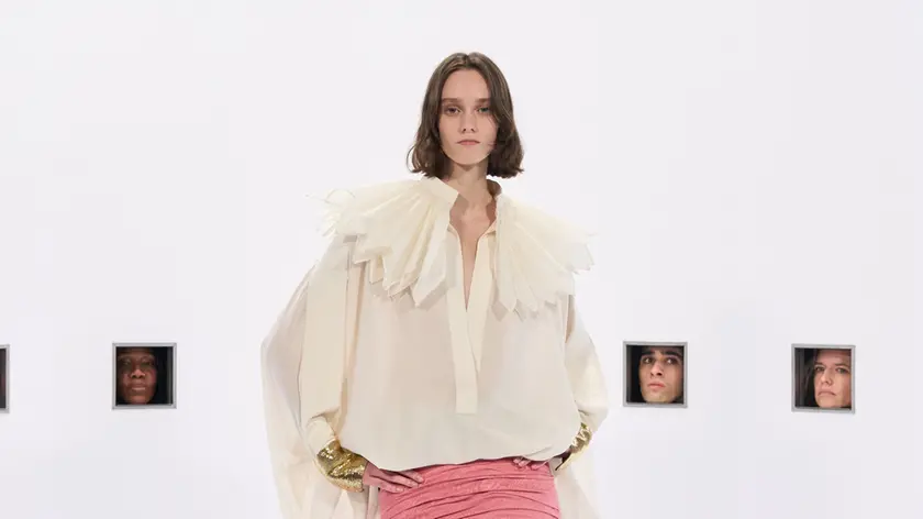 (ANSA) - PARIGI, 28 GEN - E' la giornata di Valentino oggi a Parigi: la maison sfila con la collezione haute couture per la primavera/estate 2026 disegnata da Alessandro Michele, chiamata Specula Mundi. E' la prima sfilata della maison (oggi di proprietà del fondo del Quatar Mayhoola al 70% e di Kering al 30%) dopo la scomparsa di Valentino Garavani, avvenuta il 19 gennaio a Roma. Doveroso un tributo al fondatore. La sua voce apre lo show con un estratto dal film 'Valentino: L'ultimo Imperatore' di Matt Tyrnauer: ''Mia sorella mi portò per la prima volta a vedere dei film, è stato il sogno della mia vita vedere queste bellissime donne sul grande schermo. Avevo 13 anni, decisi che volevo creare abiti per queste donne''. Michele ha sentito l'esigenza di spiegare il suo intento anche in una lettera, diffusa sui social network della maison poco prima dello show: omaggiare Valentino Garavani, definito ''una figura mitologica, una presenza fondativa, un riferimento ineludibile''. Nella lunga nota Michele ha voluto anche ringraziare Giancarlo Giammetti, gli stilisti che lo hanno preceduto, Maria Grazia Chiuri e Pierpaolo Piccioli, e tutto il team della maison, dalle première ai tessutai. Il gesto creativo, oggi, è visto come un ''atto di custodia'', forte del pensiero che la bellezza tanto ricercata da Valentino ('Amo la bellezza, non è colpa mia', la sua frase più celebre) sia ''attenzione radicale e paziente ai corpi, alle forme, al tempo che le attraversa e le custodisce''. Un lavoro ''non per colmare un'assenza, ma per custodirla''. E, come sempre con le collezioni di Michele, il raggiungimento di questa idea alta di bellezza va oltre la creazione di meravigliosi abiti di alta moda. Si capisce immediatamente dall'allestimento del defilè, che assomiglia di più ad una performance, allestita con un set ispirato dal Kaiserpanorama, una macchina ottica collettiva apparsa in Europa nel XIX secolo per la visione di immagini stereoscopiche. Gli spettatori sedevano attorno a strutture circolari in legno per osservare le immagini attraverso dei visori. Il set dello show ricrea questo ambiente. Ma attenzione, non è una citazione storica né un artificio scenografico, per Michele l'idea serve per interrogarsi sulla contemporaneità, la sovraesposizione mediatica e la velocità nella fruizione di immagini. Per un nuovo modo di intendere l'haute couture, in cui i vestiti diventano ''presenze sacre che chiedono sosta, ascolto, disposizione'', spiega Michele. Ad aprire lo show c'è un altro omaggio al fondatore: un abito lungo con spacco sulla coscia e scollo a V profondo fino all'ombelico, è rosso Valentino. Poi inizia un viaggio tra icone di Hollywood, mantelli d'ispirazione religiosa, copricapo dentellati, riferimenti a divinità antiche, velluti a profusione, colletti giganti e maxi gorgiere che sembrano fiori appena sbocciati, grandi fiocchi. Ricordano le dive della vecchia Hollywood i copricapo decorati con enormi piume di marabù, così come i mantelli di velluto con paillettes, ricami e decorazioni d'atelier. Sontuosi gli abiti da red carpet, anche nei modelli più sensuali con cut-out trasparenti ricoperti da cristalli. E' il massimalismo di Alessandro Michele, tenuto vivo da quelle maestranze care alla maison. Ad applaudirlo, tra gli altri, c'erano Kristen Dunst, Dakota Johnson, Lily Allen e Sir Elton John. (ANSA).
