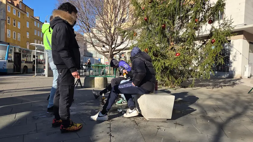 Un gruppo di giovani su una panchina di largo Barriera