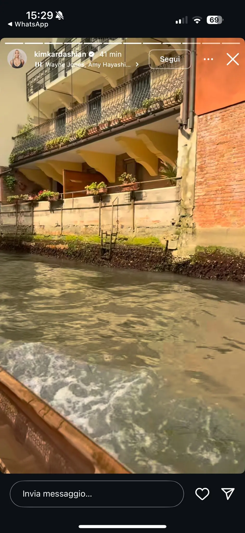 Il video dal taxi tra i palazzi veneziani, poi la vista della terrazza del Gritti: le stories di Kim Kardashian
