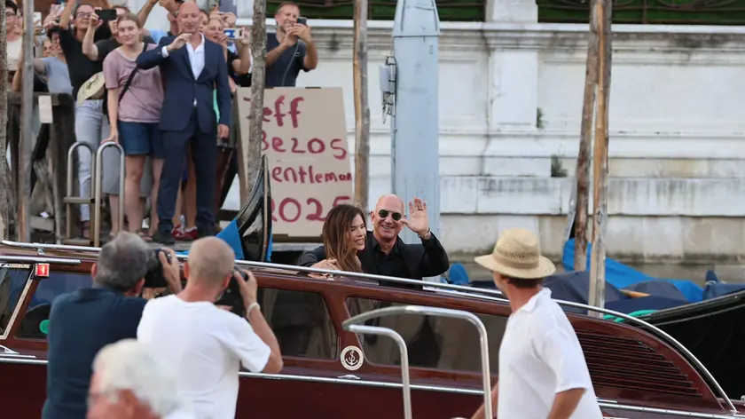 È uscito dall’Aman intorno alle 18, elegante, nessun eccesso: abito nero, papillon, camicia bianca, quegli occhiali da sole d’ordinanza con cui ormai ha abituato veneziani e curiosi sin dal suo arrivo in città. Jeff Bezos ha salutato i curiosi che non hanno mancato di appostarsi di fronte all’albergo, per poi percorrere il Canal Grande “inseguito” da taxi della sicurezza e paparazzi