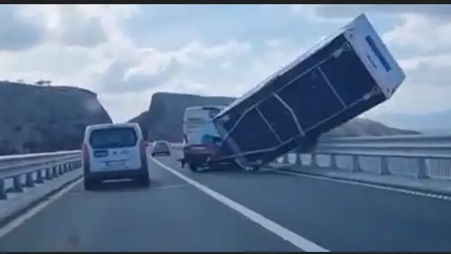 La roulotte era stata portata sul ponte di Veglia da un furgone, il cui conducente – probabilmente un cittadino straniero – non ha rispettato l’ordine delle competenti autorità che, date le raffiche fino a 172 chilometri orari, avevano vietato ad autobus a due piani, motocicli, veicoli con camper e camion dotati di telone, di transitare sull’infrastruttura.