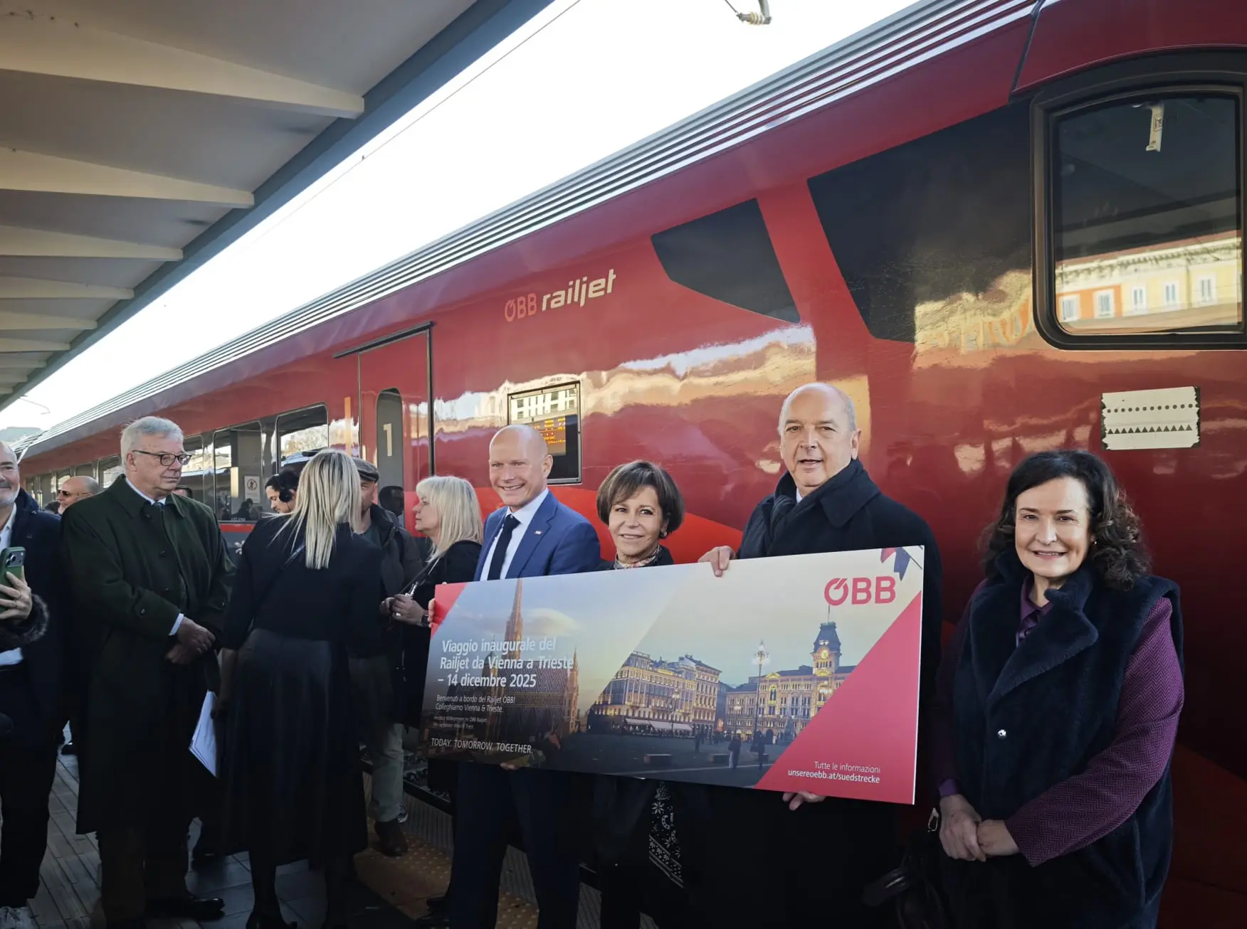 Ad accoglierlo al suo arrivo il sindaco di Trieste, Roberto Dipiazza, che ha ricevuto un modellino del Railjet 136. Dopo l’inaugurazione, valzer viennese in costume, specialità triestine e una fetta di torta Sacher ad allietare gli ospiti dell’evento. «Vienna è vicina», ha detto il sindaco, ricordando il legame tra il capoluogo della regione e la capitale austriaca. Dipiazza ha ringraziato gli austriaci per l'investimento fatto, che – ha sottolineato – andrà sia a beneficio delle persone sia dei commerci. «Pensate a quante merci raggiungeranno il porto di Trieste», ha sottolineato il sindaco.