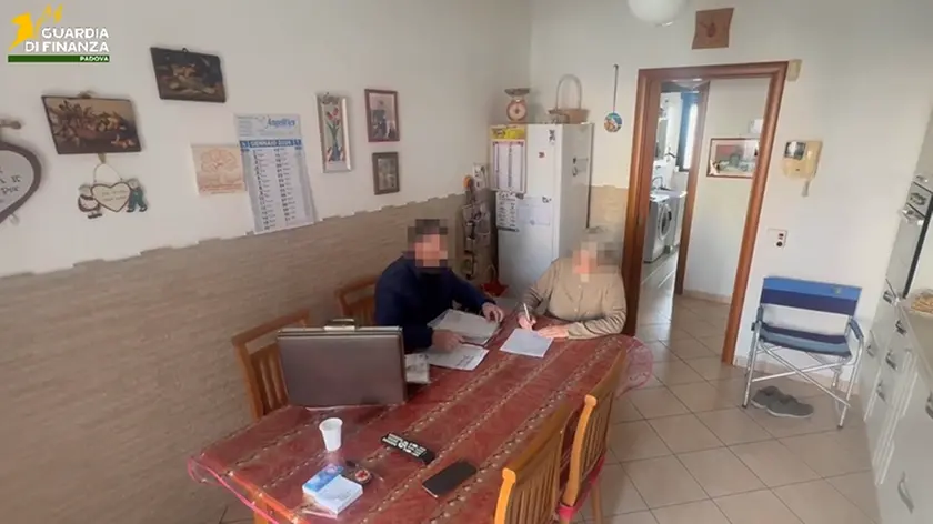 La firma di un contratto da parte di un'anziana nelle immagini diffuse dalla Finanza