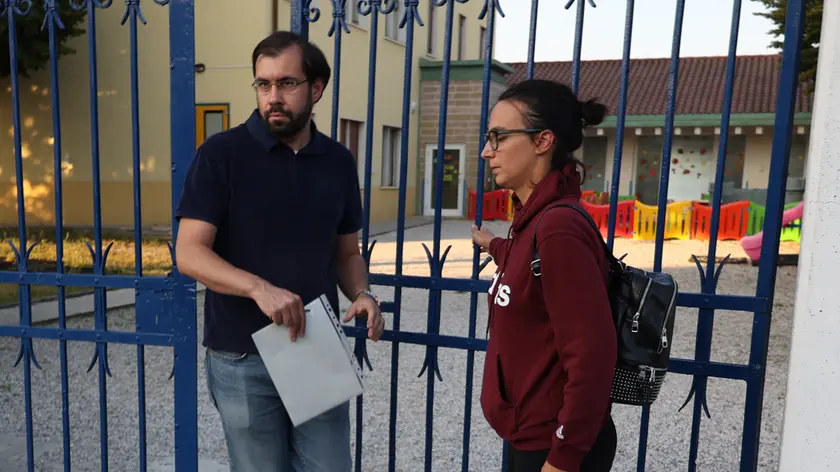 A destra Rachele Pezzillo esce dall’asilo di Porcellengo con il suo legale