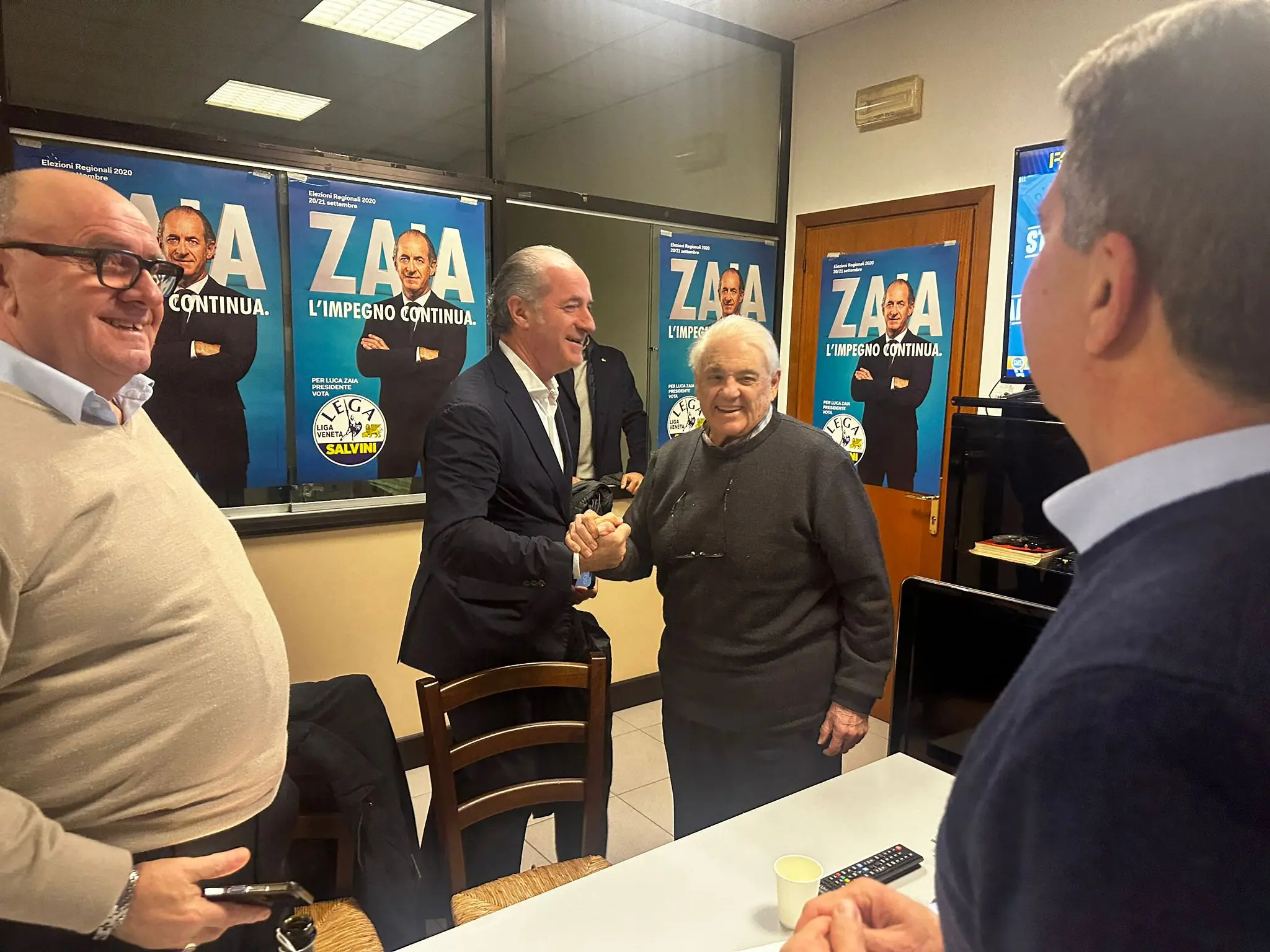 L'ex presidente del Veneto Luca Zaia è arrivato al K3, sede della Lega della Marcs, ed è stato accolto da Gian Paolo Gobbo, volto storico del Carroccio a Treviso ed ora consigliere federale del partito di Salvini. Tra i due un caloroso abbraccio a sancire il risultato delle urne.