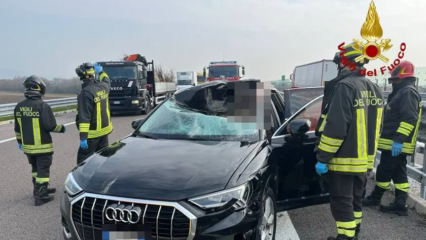 Cervo sfonda il parabrezza di un’auto sulla Pedemontana Veneta, grave la conducente