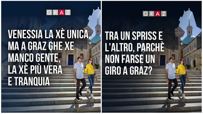 «Tra uno spriss e l’altro, parché non farse un giro a Graz?». La campagna di promozione turistica del capoluogo del land meridionale austriaco della Stiria parla veneziano.