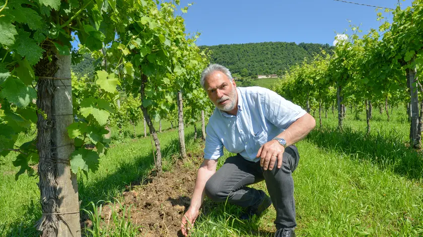 Il geologo Gino Lucchetta tra i filari di una vigna