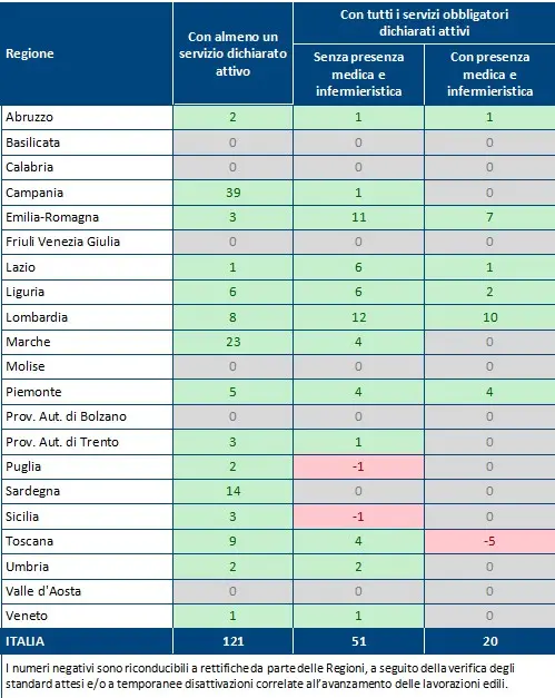 Un risultato che colloca la regione tra le più avanzate nella fase di avvio della riforma. Ma il dato cambia se si guarda alla qualità e alla completezza dei servizi: solo una quota minima delle strutture è infatti pienamente operativa.