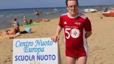Questa è la storia di Erik, un atleta “speciale” che insegna a bambini e adulti a nuotare, aiutandoli a conoscere il mare e ad amarlo. Siamo a Bibione, dove da ormai quasi un quarto di secolo opera la scuola di nuoto in mare Centro Europa. Attiva in tre zone del litorale, d’estate la scuola organizza corsi di nuoto in cinque lingue, soprattutto per bambini. Al fianco degli istruttori qualificati con brevetto Fin (Federnuoto), opera Erik Marchetti, 40 anni, atleta polivalente con sindrome di Down che è ormai un veterano di Special Olympics. Erik, originario di Tolmezzo in Carnia, ha alle spalle una carriera agonistica di primissimo piano. Ha collezionato medaglie e record partecipando ai Mondiali Special Olympics, nel 2010 il Coni gli ha attribuito la medaglia d’argento al valore atletico e, tra le imprese di cui va orgoglioso, c’è l’attraversamento dello stretto di Messina. Adesso Erik Marchetti ha messo la sua esperienza e la sua grande capacità comunicativa al servizio di bambini e ragazzi della scuola di nuoto di Bibione.