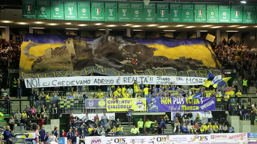 La società presieduta da Piero Garbellotto e Pietro Maschio non si è tirata indietro di fronte a un Palaverde quasi esaurito: 500 litri di Prosecco Doc, panettone per tutti, raffica di selfie con le campionesse del mondo (e con Santarelli e lo staff, ovviamente) soltanto dopo il giro di campo con lei, la coppa di Campioni del Mondo. Un gioiello cha farà per sempre bella mostra nella storia dello sport trevigiano.