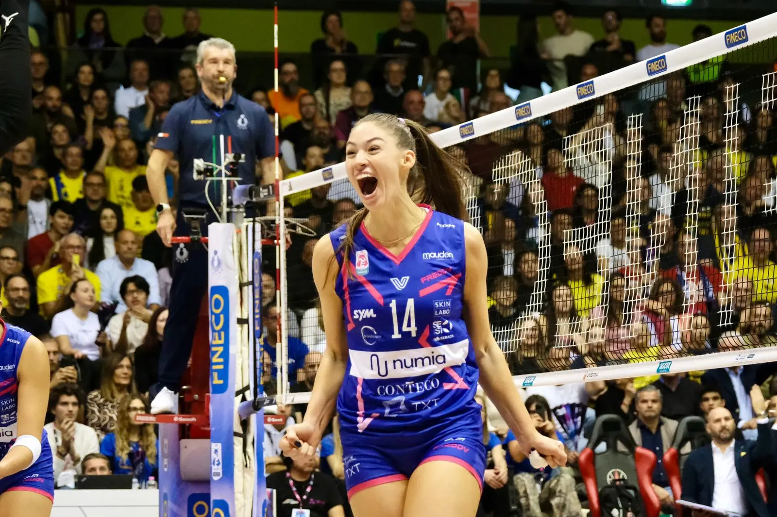 La partita si decide al tiebreak. Milano, nelle prime azioni, trova un’inerzia positiva portandosi avanti di un break (2-4). Egonu e Cagnin mettono a terra anche i due punti successivi facendo un po’ tremare le gambe alla Prosecco Doc (2-6).