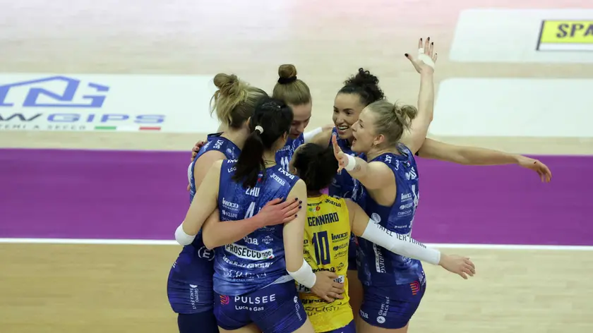 Equilibrio anche nel terzo (5-5) fino a quando le pantere decidono di salire in cattedra mettendo sul taraflex tutto il meglio della propria pallavolo, con combinazioni perfettamente oliate (15-7). Sul finale torna a fare la voce grossa anche Cristina Chirichella, fin lì poco coinvolta nel gioco (20-11). Ormai lanciata verso la vittoria, è una battuta sbagliata dell’ex Carraro a regalate il 25-15 alla Prosecco Doc.