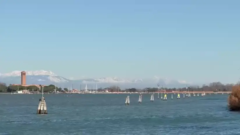 Le Dolomiti innevate si affacciano sulla laguna di Venezia
