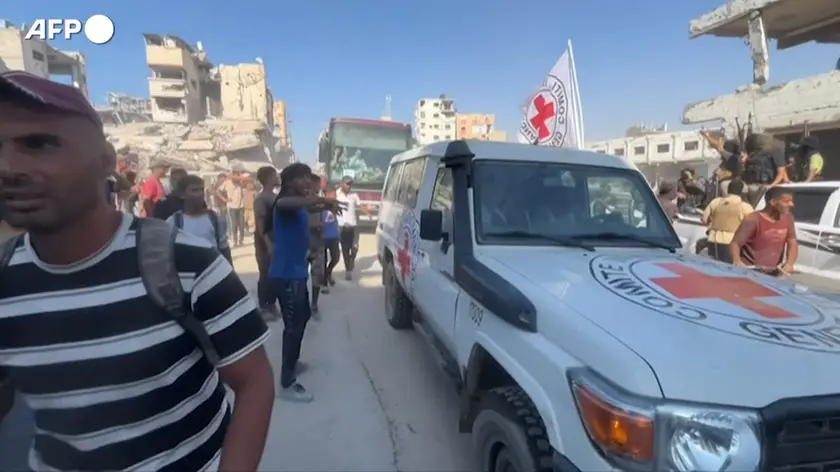Gaza, autobus carichi di palestinesi liberati da Israele arrivano a Khan Yunis